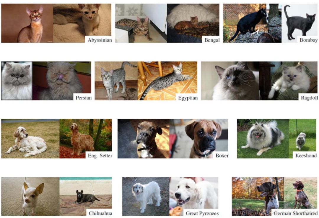 上图是猫和狗的照片,可以说,光是为猫和狗两个类别的识别设计特征就需要耗费大量的精力,并且还得是“猫狗专家”才能做这件事情。那么,当要识别的类别上升到1000类的时候呢?传统的视觉算法的识别精度将会更低。