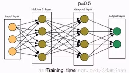 那么等到训练结束的时候,我们的我们的网络可以看作是很多个半数网络的集成模型,到应用网络的阶段,我们就不再使用Dropout,即