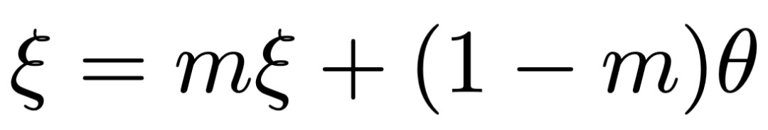 4. 在线网络更新完成后,在线网络的编码器通过指数移动平均更新目标网络的编码器: