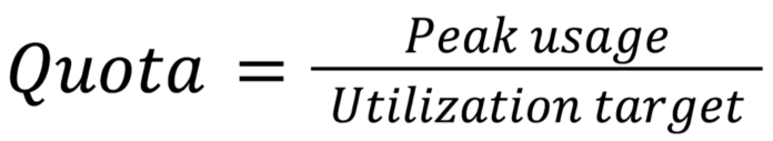 将第三高峰值定义为集群的峰值 CPU 利用率。在最后一步中,从集群的 42 个数据点(14 天 *3 个数据点 / 天)中提取峰值 CPU 利用率。峰值 CPU 利用率被定义为第三高的数据点。通过选择第三高的数据点,我们避免了对异常值的过度索引。在确定了每个集群的峰值 CPU 利用率后,我们将配额计算为: