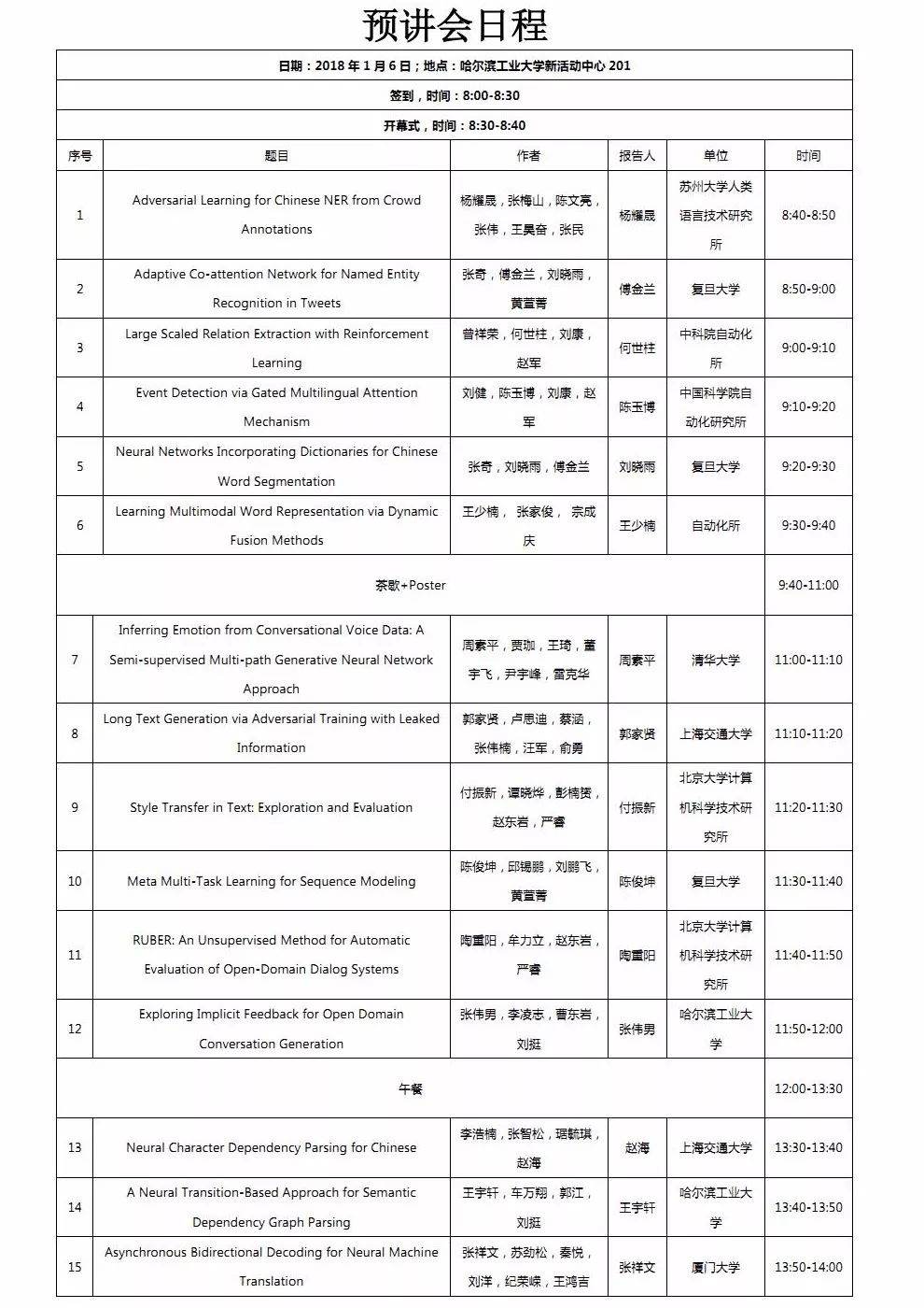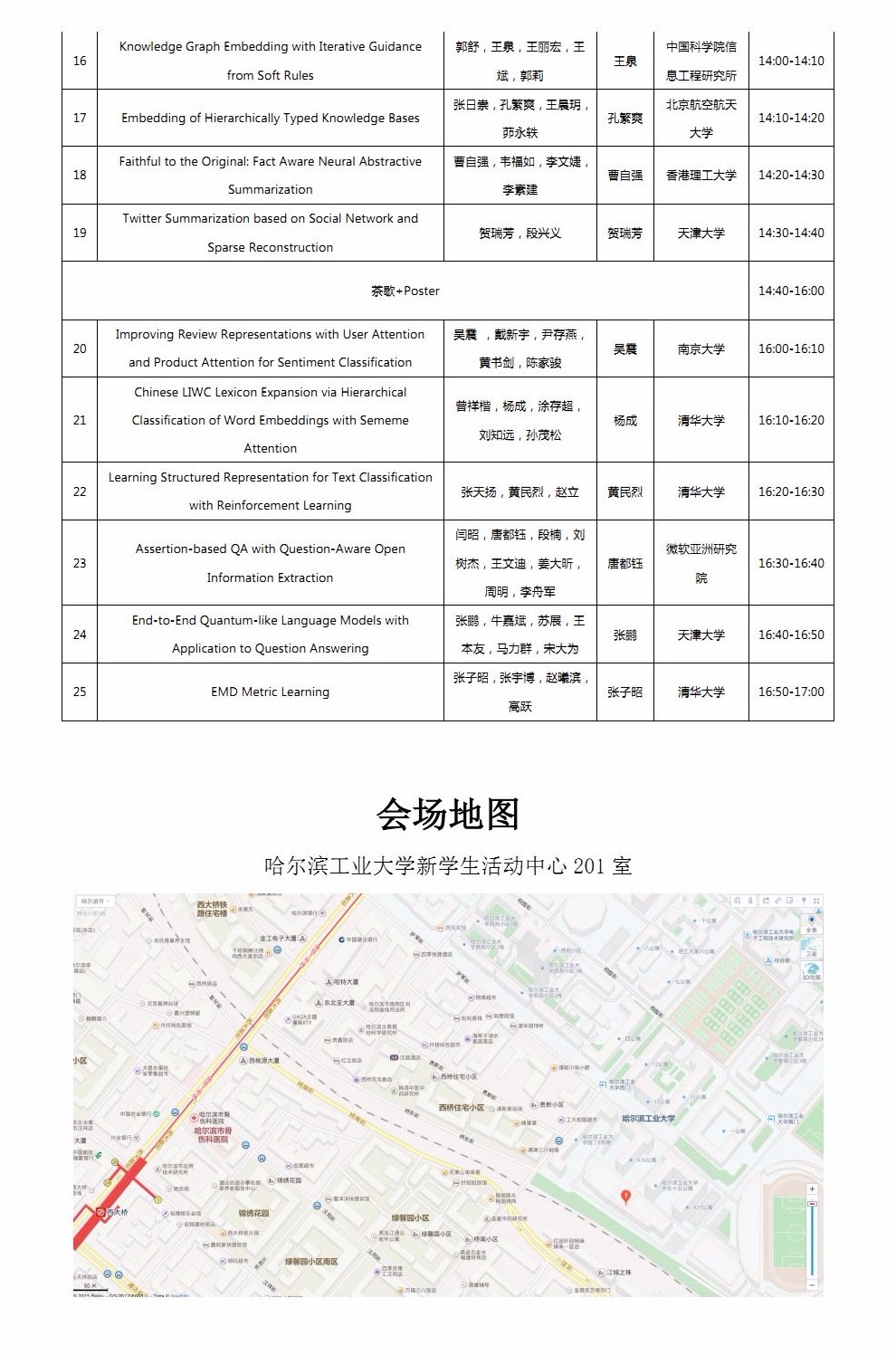 地点:哈尔滨工业大学新学生活动中心201室