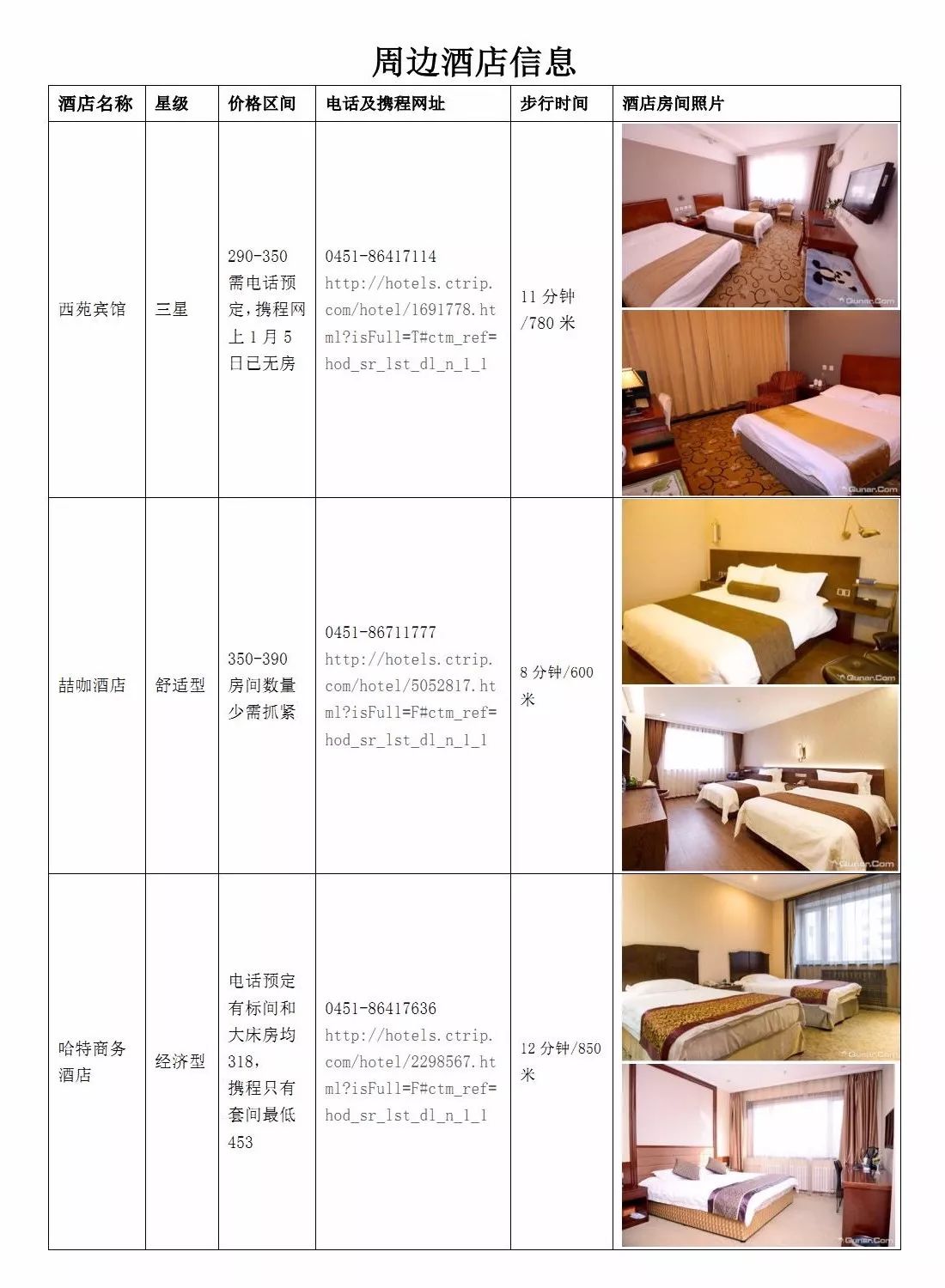 会议举办期间是哈尔滨冰雪节旅游旺季,宾馆预订困难,请尽快预订,有关周边宾馆的推荐信息见附录