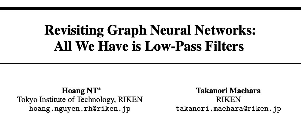 但最近,一篇题为“Revisiting Graph Neural Networks: All We Have is Low-Pass Filters”的论文引起关注,文中提出,图神经网络仅仅是对特征向量进行低通滤波而已。