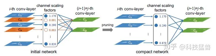 而这步channel pruning的过程就相当于是上一节介绍的slimming操作。