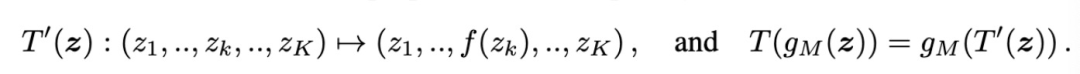作者提出了一种独立的非统计定义,考虑对数据模型进行转换。如图 3c 的交换图所示,这样的属性的分离相当于令 T 对应于潜在空间的变换 T′,该变换 T′将仅作用于单个变量 z_k,使用变换函数 f,其它潜在变量可用于其它属性的编码。
