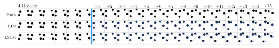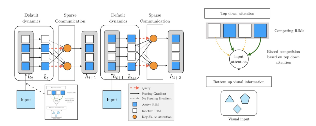当输入与其相关时,激活并更新对应的 RIM,并为之分配所需要的表征和计算资源。如果训练数据是由一组独立的物理机制生成的,则其学习机制也是独立的。