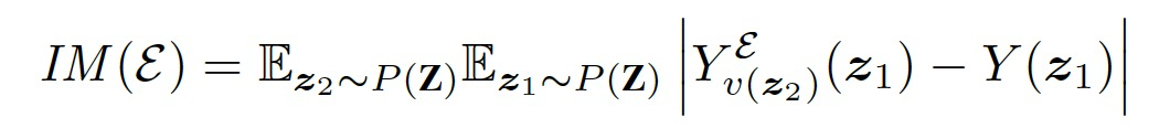 其中 Y(z1) 是潜在输入 z1 生成的无干扰输出。绝对值内的差异可以解释为潜在结果框架中的单元级因果效应 (unit-level causal effect),以及,求取这种期望近似于计算平均治疗效果(average treatment effect)。上式的输出 IM 与输出图像的尺寸相同时,通过颜色通道对其求取平均,从而得到一个灰度热图像素图。