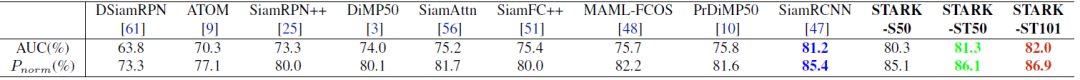 STARK 包括 Spatial-Only 和 Spatio-Temporal 两个版本,其中 Spatial-Only 版本仅使用空间信息,Spatio-Temporal 版本则同时利用了时间和空间信息。