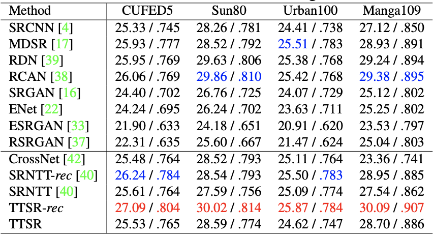 了解更多 TTSR 细节,可点击查看此前的文章:CVPR 2020丨图像超清化+老照片修复技术,拯救你所有的模糊、破损照片。