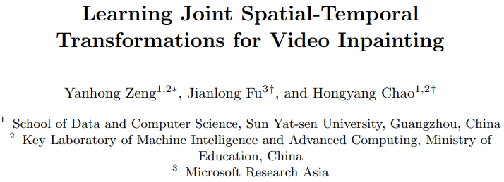 为了解决这样的问题,微软亚洲研究院的研究员们利用并重新设计了Transformer结构,提出了 Spatial-Temporal Transformer Network (STTN)。 相关论文“Learning Joint Spatial-Temporal Transformations for Video Inpainting”发表在了 ECCV 2020。