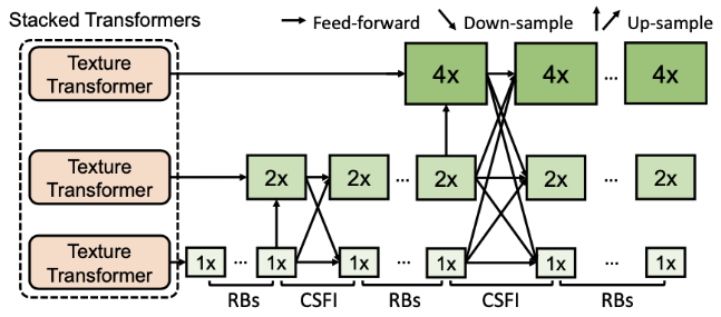 图4:多个纹理 Transformer 跨层级堆叠模型