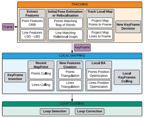1. 在ORB-SLAM算法中,加入了线特征的应用,从而提升了其在弱纹理环境中的运行性能 ,得到了PL-SLAM算法。