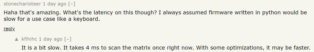 但鉴于作者在项目中用的语言是 Python,大家不免担心起速度问题。对此,作者回复称,「确实有点慢,现在扫描一次矩阵需要 4 毫秒,但优化之后速度会有提升。」