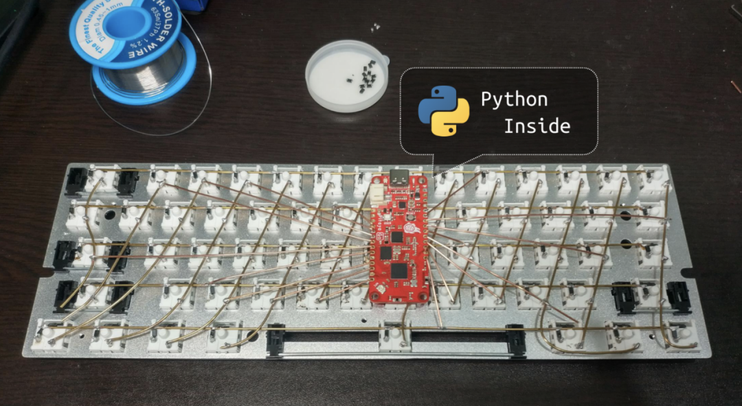 近日,一位中国开发者在 GitHub 上开源了一个带有 USB 和蓝牙的手工「焊」接 Python 键盘的代码。该项目使用了 AdaFruit 的人员开发的 CircuitPython(衍生自 MicroPython)的特定实现,该实现可以在容纳 256K 的代码空间和 16K 的 RAM 的虚拟机上运行。