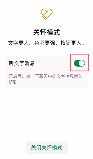 据“微信派”公众号消息,微信现在支持“听文字消息”了。开启后,点一下聊天中的文字消息就能听到。无论你是安卓手机,还是苹果手机,更新到最新版本就能用。具体开启方法为:打开微信,点击“我”,选择“设置”,找到“关怀模式”,按“开启”。再调节“听文字消息”按钮到开启状态。接下来,当再打开任何一个微信聊天,点一下文字,就能读出来。