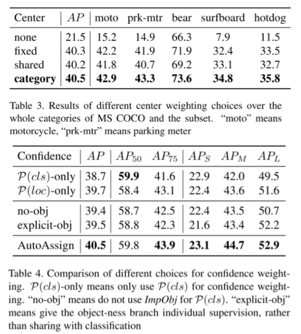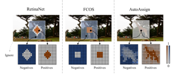 最近的AutoAssign在FCOS的基础上,通过引入ImpObj、Center Weighting和Confidence Weighting三个分支,将FCOS中根据空间和尺度定义正负样本的方式和center-ness分支都去掉,将label assign做的更加彻底,完完全全通过CNN学习自适应的label assign方式。