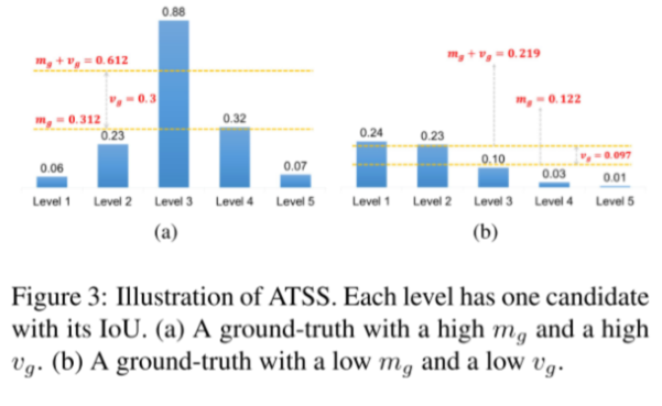 2.使用候选anchor box的mean和std之和作为IOU阈值自适应的挑选候选正样本
