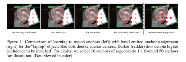 如下图所示,随着训练的进行,检测器挑选出匹配的anchor。