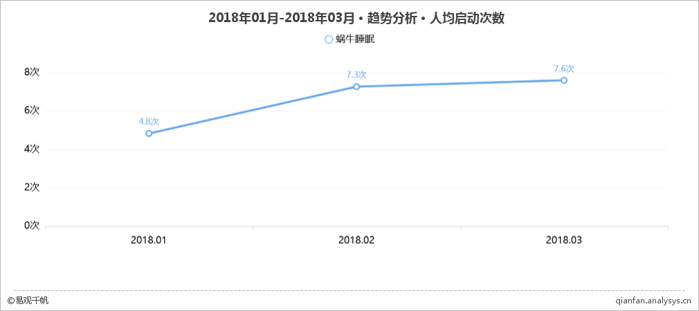 2018年1月-2018年3月蜗牛睡眠APP人均启动次数趋势