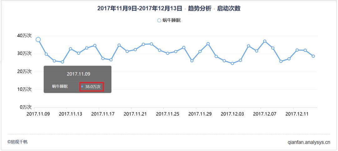 2017年11月9日-12月13日蜗牛睡眠APP启动次数趋势