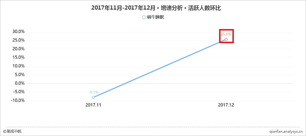 2017年11月-12月蜗牛睡眠APP活跃人数环比增速分析