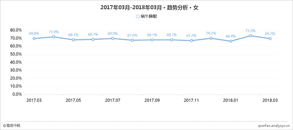 2017年3月-2018年3月蜗牛睡眠APP女性用户趋势