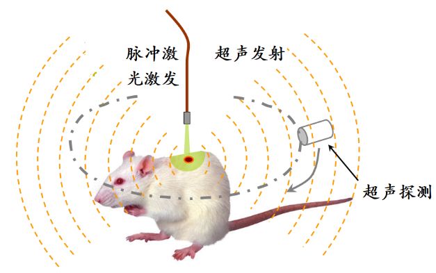 脉冲光照射下,生物组织瞬时吸收能量快速膨胀从而发射超声,对于超声而言,生物组织是透明的,探测超声可对其内部进行成像。