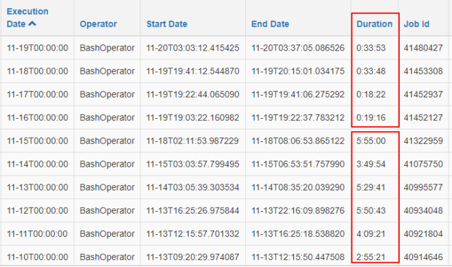 这也就解释了运行时长不断增长,排序的内存开销和时长都不断增长,直到某个阈值连加内存也不管用了。经过和业务同学的沟通,确认空值无意义,进行排除过滤。然后在默认的参数下进行了重跑,30 分钟内就跑完了。耗时下降约 90%,效果明显。