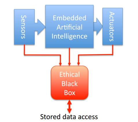 对于不同的利益相关者而言,透明度必然意味着不同的事情——安全认证机构或事故调查员所要求的透明度显然需要与系统用户或运营商所要求的不同。但一个重要的基本原则是,应该总是有可能找出为什么自主系统会作出特定的决定(尤其是如果这一决定已经造成损害)。提供这种透明度,特别是事故调查的技术,相当于一架飞机飞行数据记录仪(FDR)。由于飞机FDR通常被称为黑匣子,我们称这种技术为“伦理黑匣子”,这样的设备将支持机器人和机器人系统的伦理治理的整体,以及重要的物理组件。像其航空对手一样,伦理黑匣子将不断记录传感器和相关的内部状态数据,以便大大方便(尽管不能保证)发现机器人为什么做出特定决定或一系列决策——特别是导致事故的决策。伦理黑匣子需要根据标准行业规范进行设计和认证,尽管每类机器人很有可能具有不同的标准;无人驾驶车一种、无人机又是另外一种,等等。