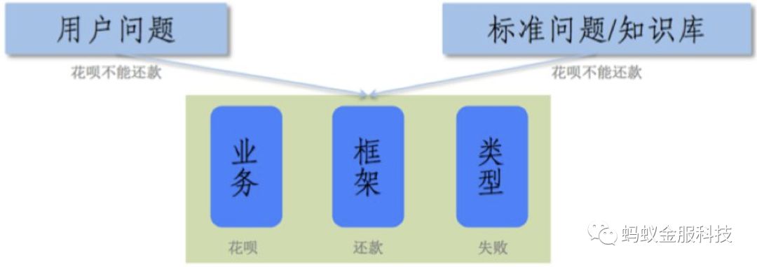 三要素拆分方式的方式能够帮助快速缩小识别范围。用户在描述中,可能不能一次把三要素都描述清楚,但是如果给出了某部分要素,比如用户说「我要还款」,就给出了框架「还款」和类型「如何」,这时我们就可以就缺失的「业务」要素进行反问,比如,「您是要进行花呗还款、借呗还款还是信用卡还款?」