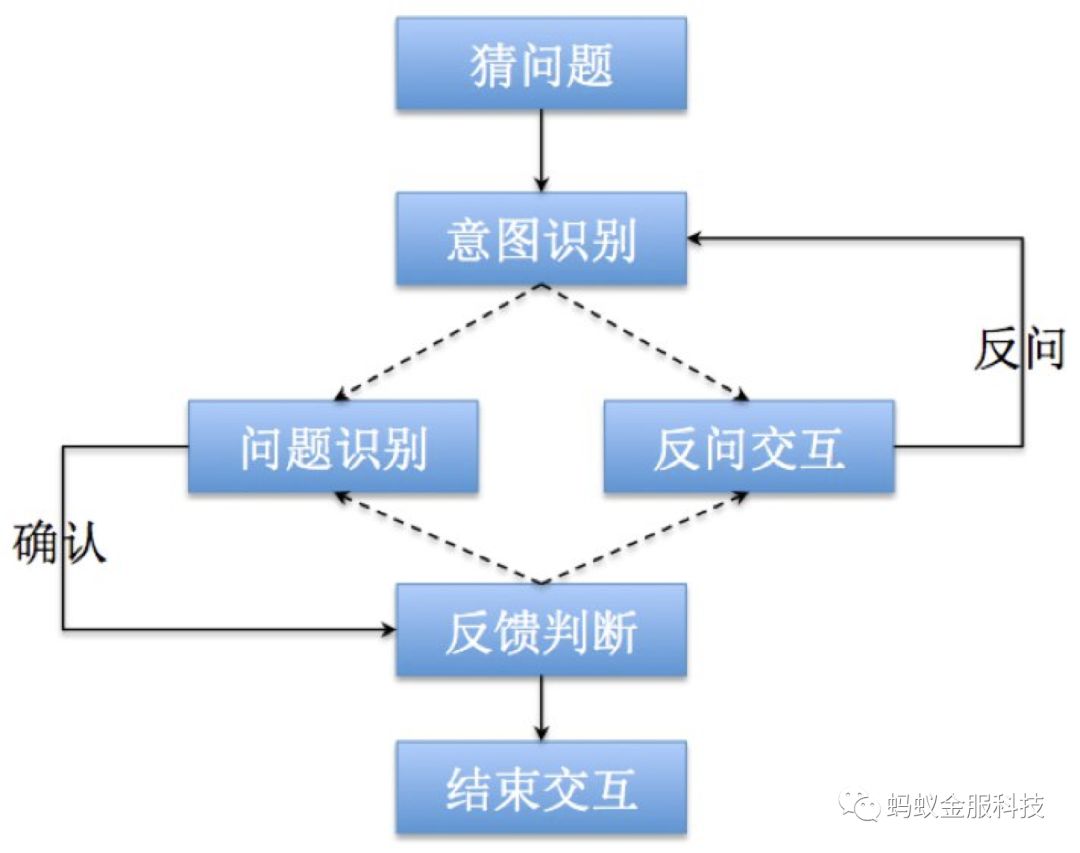 深空:MISA 的主要模块有猜问题、问题识别、反问交互三个。「猜问题」是蚂蚁金服在客服领域的首创,是一个利用用户可能与本次致电相关的信息,基于深度学习算法框架构建的问题识别模型。「问题识别」是根据用户的描述定位他可能遇到的问题。「反问交互」是在用户给出的信息不全时,利用「要素拆解和补全」的方式帮助问题识别模块圈定范围,降低问题识别的难度,以反问的形式与用户进行交互。