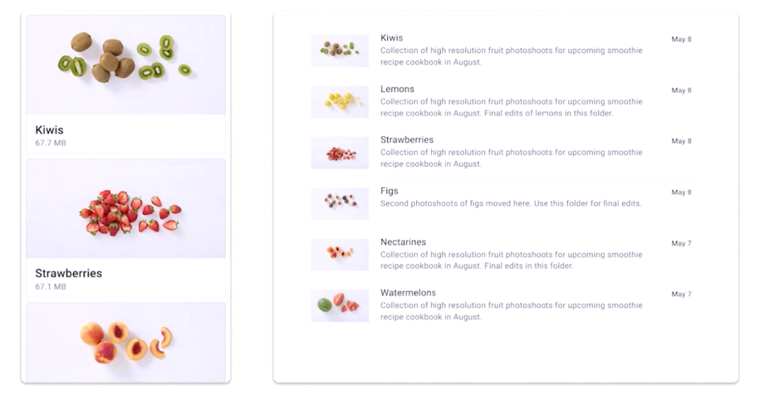指南中的组合部分带您了解如何充分利用屏幕空间以保障可读性,并且以尊重用户心智模型的方式在不同的场景下合理排布重要内容和操作选项。包括适当缩放以展示更多内容,如示例中的副标题和日期,以及较小的组合技术,例如在紧凑型的布局中对内容进行视觉分组并保持其相关性等。