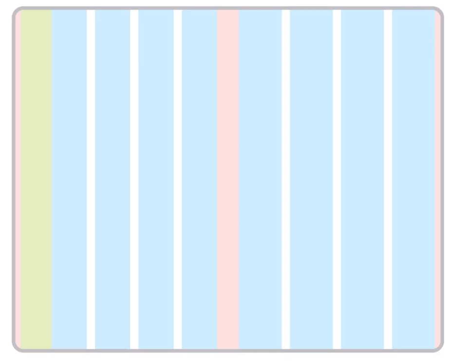 现在,许多应用将屏幕视作一个大画布或单栏,以水平和垂直的方式按相互关系绘制元素,有些应用也会在一侧整体留出边距。这一做法在小屏上或许行得通,当屏幕尺寸较大时就会出现明显的问题。网格系统则将您的布局划分为一系列栏,从而帮助您在规范网格中设计更具表现力的布局。在布局中使用栏式网格 (如下图),能够让大屏设备的体验呈现更贴心,更组织有序的印象,使得设备和内容更自然地融为一体。