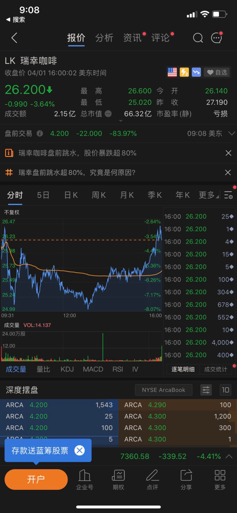 瑞幸承认财务造假,开盘熔断,暴跌逾 80%