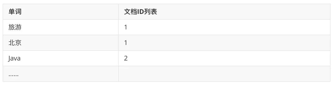 全文搜索引擎是使用倒排索引技术,建立单词到文档的索引,例如上面的表信息建立倒排索引: