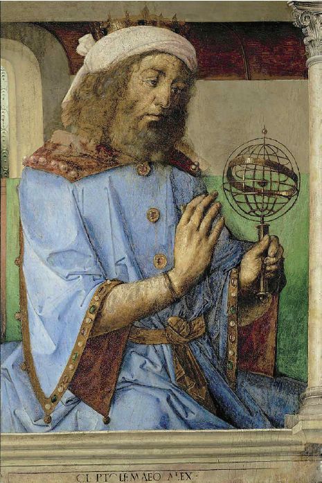 图1 手持环形球仪(类似于中国的浑仪和浑象)的托勒密(Joos van Ghent &Pedro Berruguete,1476)