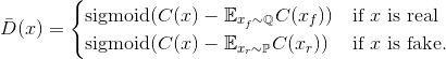 相对均值标准GAN(RaSGAN)的判别器: