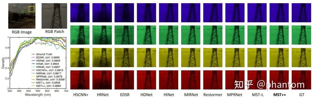 我们的两个工作 MST 与 MST++ 就分别针对 SCI-to-HSI 与 RGB-to-HSI 设计了历史上第一个用于高光谱图像重建的 Transformer。