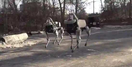 波士顿动力(Boston Dynamics)又发布了一个惊艳视频:十只SpotMini排排站,“嘿咻嘿咻”拉着大货车前行。