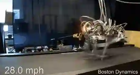 在波士顿动力公司发布的宣传视频中,Cheetah 在跑步机上创造了 48 公里 / 小时的机器人奔跑时速记录。