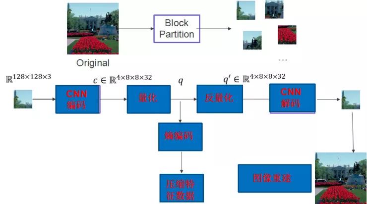 所以为了设计靠谱的算法,我们使用一种称为量化的技术,它的目的是将浮点数转换为整数或二进制数,最简单的操作是去掉浮点数后面的小数,浮点数变成整数后只占据 8 比特,则表示每个像素要占据 24 个比特位。与之对应,在解码端,可以使用反量化技术将变换后的特征数据恢复成浮点数,如给整数加上一个随机小数,这样可以一定程度上降低量化对神经网络精度的影响,从而提高恢复图像的质量。