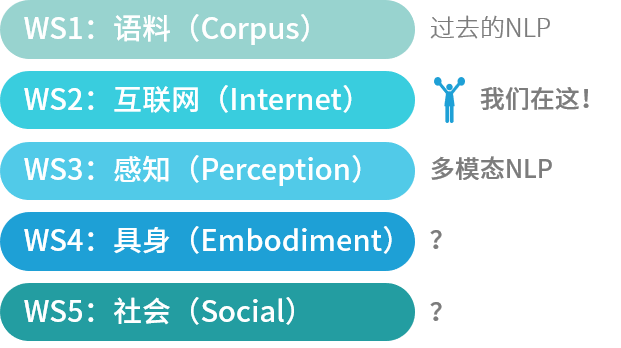 WS1-4逐步地扩展了语言含义的组成,逐渐地,语言可以由结果转变为起因,从单纯的数据转变为有用的信息。当下,NLP系统生成的语句只能以一种与社会隔离开的方式被被动的评价,而要做到衡量NLP系统对社会的影响,必须主动地让NLP系统参与到诸如谈判,合作,情感支持等等语言活动中来,让NLP系统能够推断人的情感状态和行为的社会效益。
