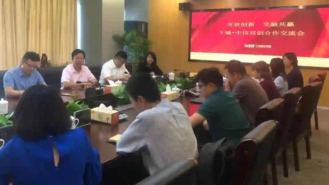 创者,始造也。无论创新创造还是创业,都代表着一种生命力,孕育着新希望。2019 年全国“大众创业·万众创新”活动周主会场落地杭州,下城分会场系列活动之一的“中信双创 x 下城国投”投融资专场活动在杭州下城区举行。借此契机,2019年6月15日中信双创走进杭州下城国投总部。会议由动点科技COO徐烨主持,中信云网首席创新官,中信双创负责人邓然与杭州市下城区科技局局长杨军,杭州市下城区投资促进局局长孔奇,杭州市下城区国投总经理赵伟东,杭州市下城区国投副总经理周晓兰,进行面对面的分享与交流。