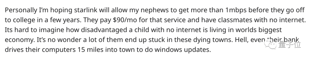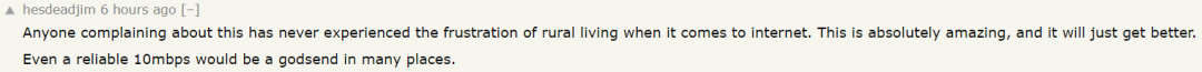 总之在这个晒Starlink帖子已经沦为了美国农村网民“晒惨”现场,由此就能看出他们是多么期待马斯克的Starlink了。
