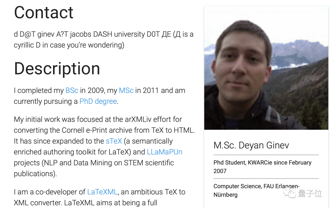 目前在埃朗根-纽伦堡大学读博士的他,正在研究的LaTeXML,就是一种将LaTeX转换成XML、HTML的工具。