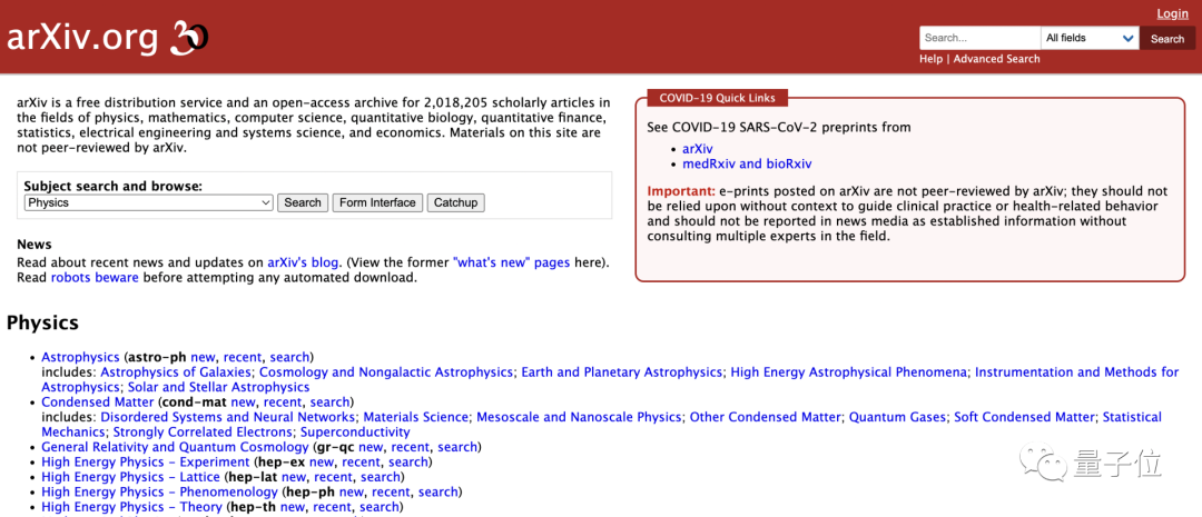 1991年诞生的arXiv,网站排版显得与这个时代有些格格不入了。