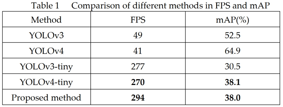 此YOLO V4 Tiny改进在保证精度的同时帧率可以达到294FPS!具有比YOLOv4-tiny(270 FPS)和YOLOv3-tiny更快的目标检测速度(277 FPS),并且其平均精度的平均值与YOLOv4-tiny几乎相同;
