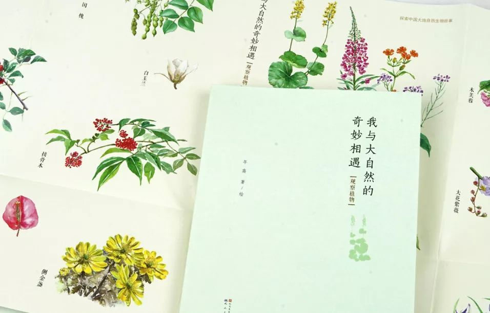 展开每本书的书封,你还能额外获得一张精美的动植物海报,比如植物册的书封是年高亲笔绘制的植物科学插画: