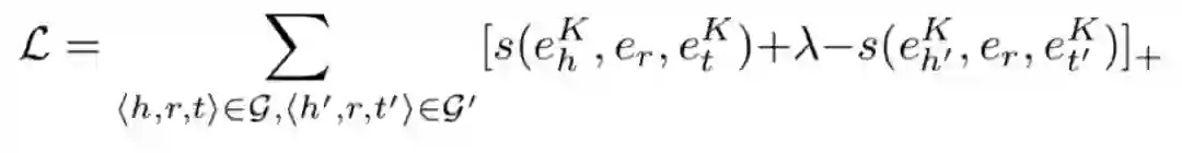 知识感知的解码器。知识图谱中链路预测的关键是利用观测到的三元组来推断对称、反对称、合成等关系模式。为了自适应地保留知识图谱不同的关系模式,KGNN采用知识感知的评分函数作为解码器。以TransH为例, 我们将三元组⟨h, r, t⟩通过K跳更新后的评分函数表示为s(eKh, er,eKt),呃,投影。然后通过基于间隔的负采样目标函数端到端训练KGNN: