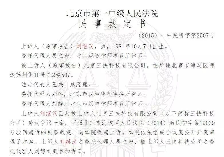 中国裁判文书网上有关三快公司与刘继汉劳动关系争议的一份民事裁定书显示,由于授予期权公司并非签订劳动合同的公司,一审海淀法院曾以被告主体不适格驳回起诉。北京一中院则以“股票期权实质上是公司向员工提供的一种福利待遇,应纳入劳动争议处理”发回重审。